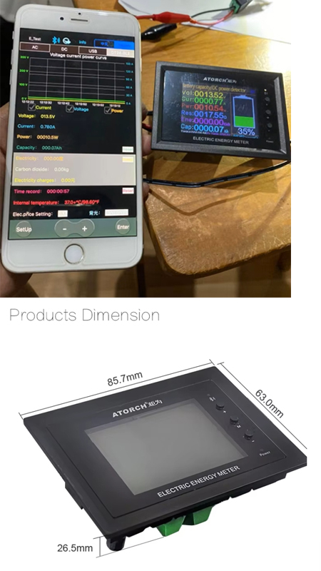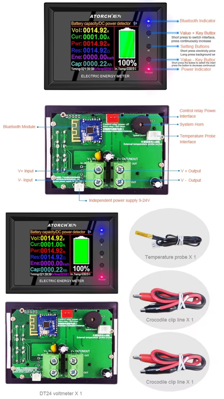 WDC005 : DT24 Digital display DC Power detector & Battery capacity tester 0-380V 30A With IPS Bluetooth Support App