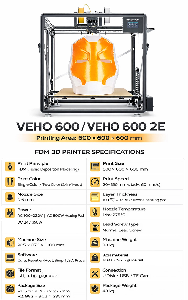 รองรับวัสดุการพิมพ์หลากหลาย เช่น PLA, ABS, TPU, PETG, Nylon และ Wood